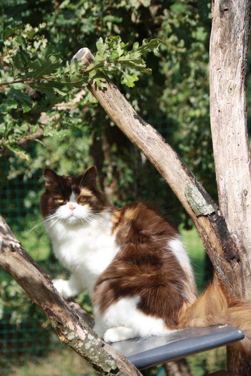 Beaucoup d'espoirs repose sur cette jolie minette!! elle est exactement ce que j'attendais une magnifique tortie à la face divisée en 2, de magnifiques yeux bleus , un poils soyeux , et un caractère top